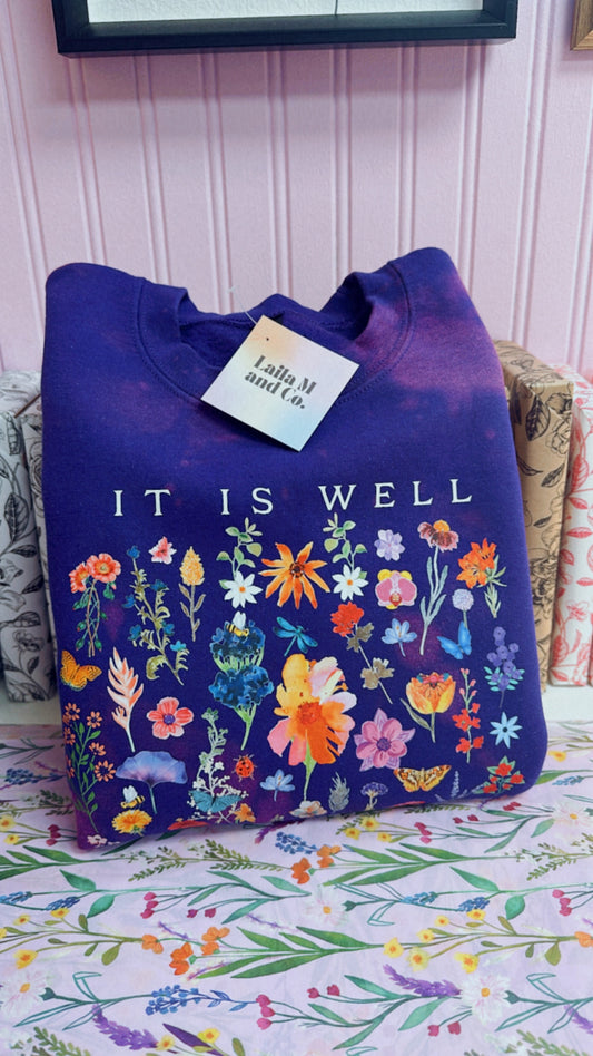 It Is Well With My Soul Tie-Dye Crewneck (Purple!)