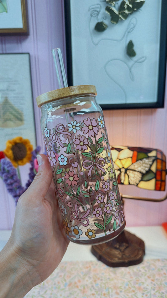 Floral Coquette 22 oz Glass Can
