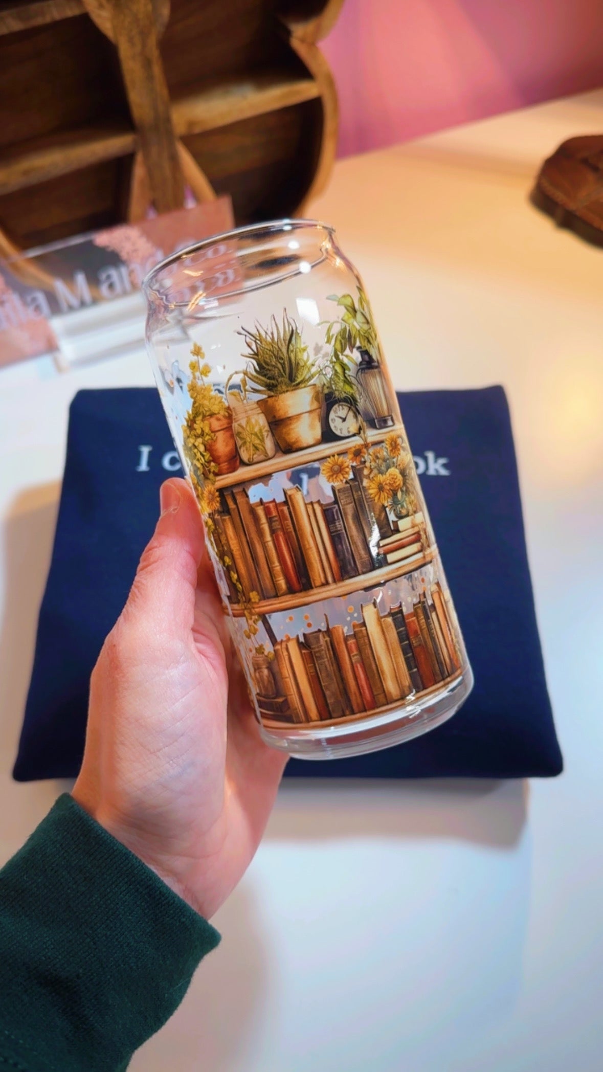 -1 (one) ‘Books and Plants’ 20oz Bookish Glass with lid and straw
